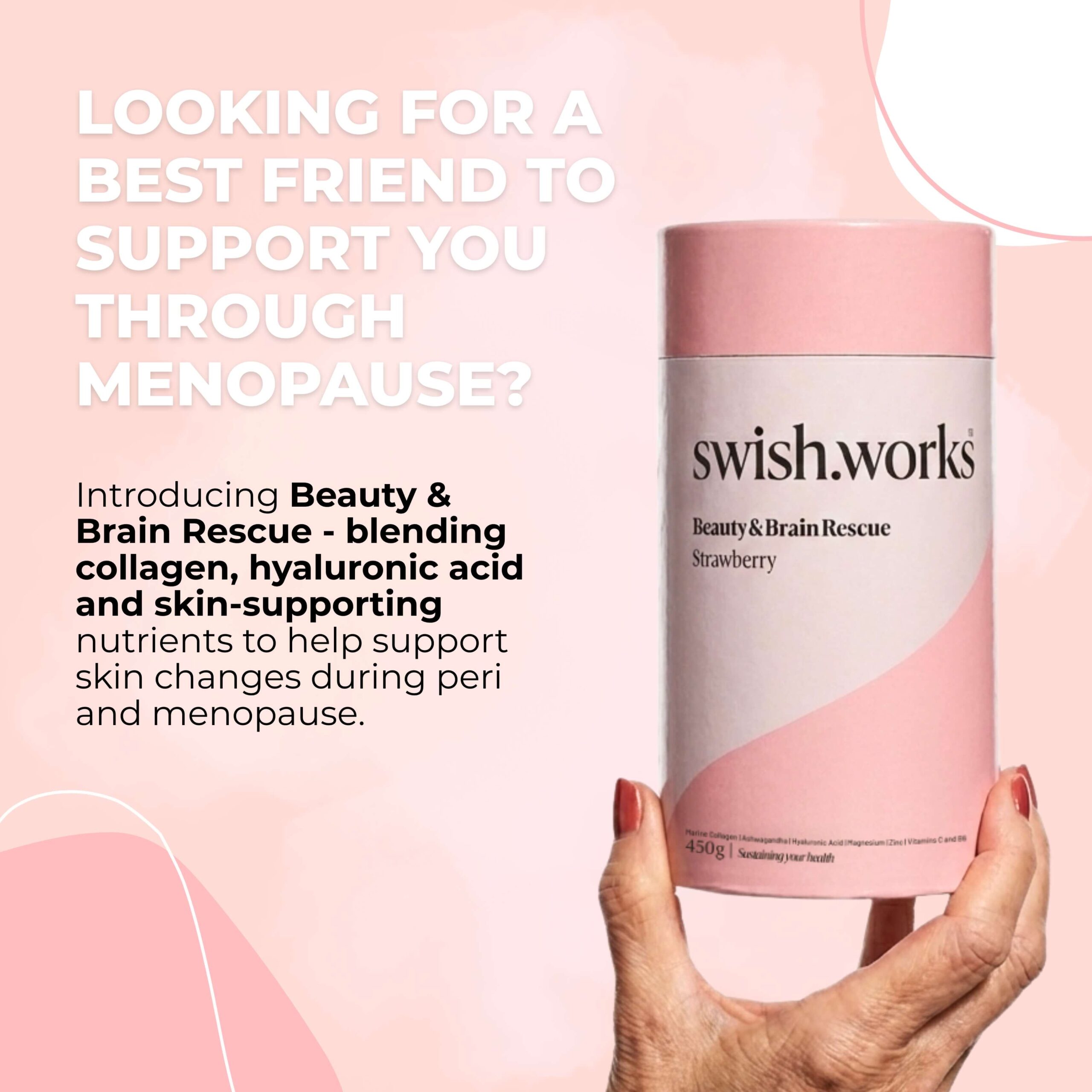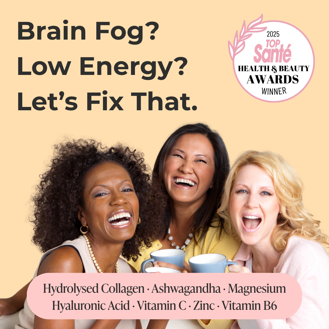 We’ve crafted a product that supports maintaining skin elasticity, nourishing hair and nails, and upholding mental clarity. Specially designed to help you navigate the challenging symptoms of perimenopause or menopause, it fights off the notorious ‘brain fog’.