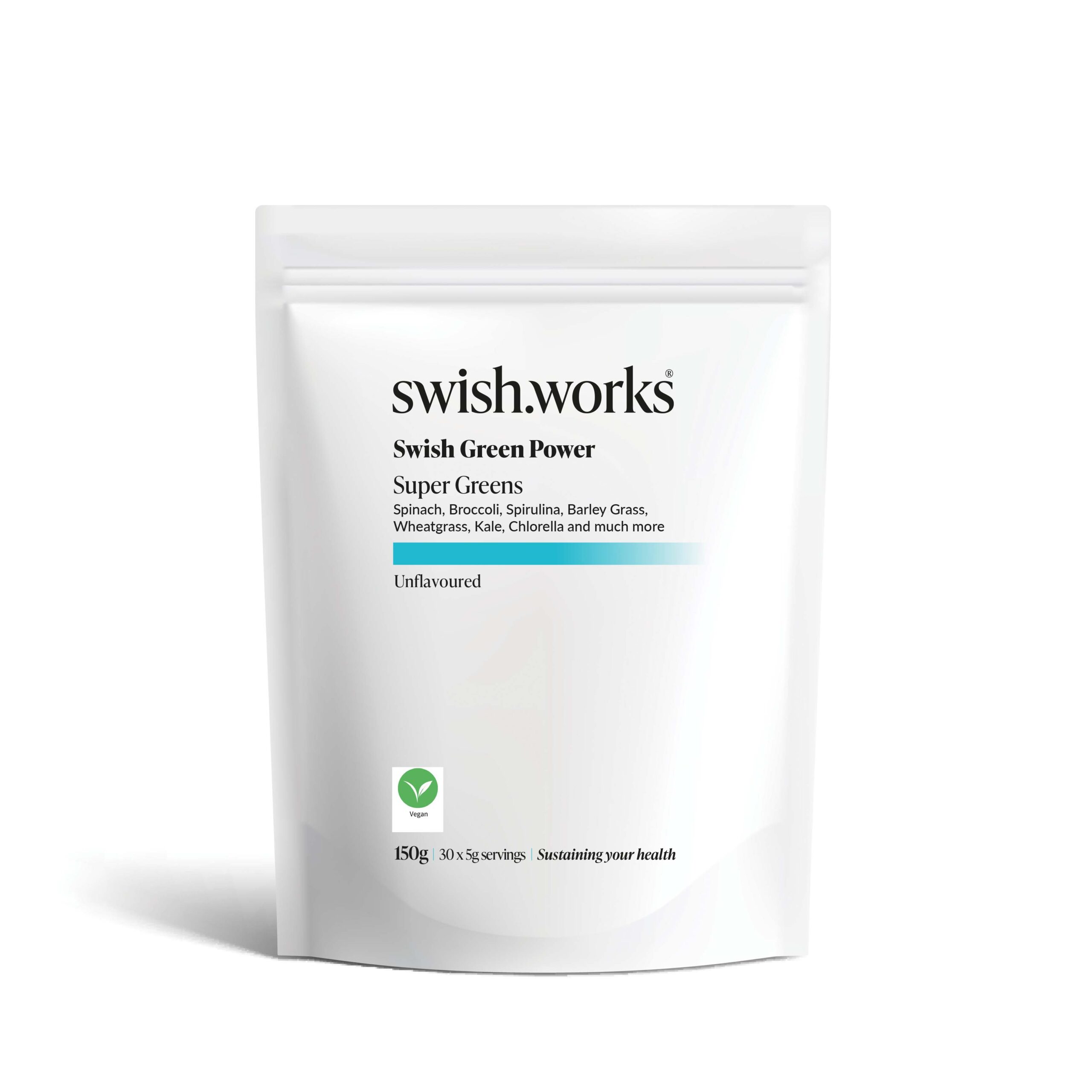 Energise your day with a single delicious drink of Swish Green Super Greens Powder, expertly blended with a powerhouse of nutrient-rich superfoods and a sustainably sourced, vegan Vitamin D3. This easy-to-consume formula is designed to support every aspect of your health – from your gut to your brain, skin, muscles, and more – ensuring you thrive in your daily life.